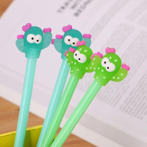 2019 Cute Cactus Shape Gel Ink Pens Kawaii Cartoons Black Ink Signature Pen Neutral Gel Ink Pens School Office Writing Tools Korean Stationery From