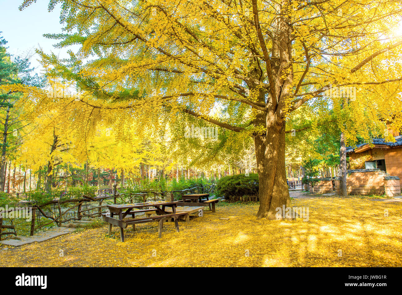 Autumn With Ginkgo Tree In Nami Island Korea Stock Photo